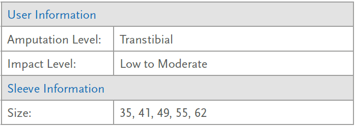 Össur recommends that the Iceform Sleeve is used in conjuction with the Iceform Cushion Liners, for low to medium impact use.