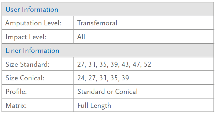 Relax above-knee liner provides secure suspension between the residual limb and the prosthesis. The silicone used is particularly skin-friendly and easy to clean while the Umbrellan fabric is designed to treat phantom pain.